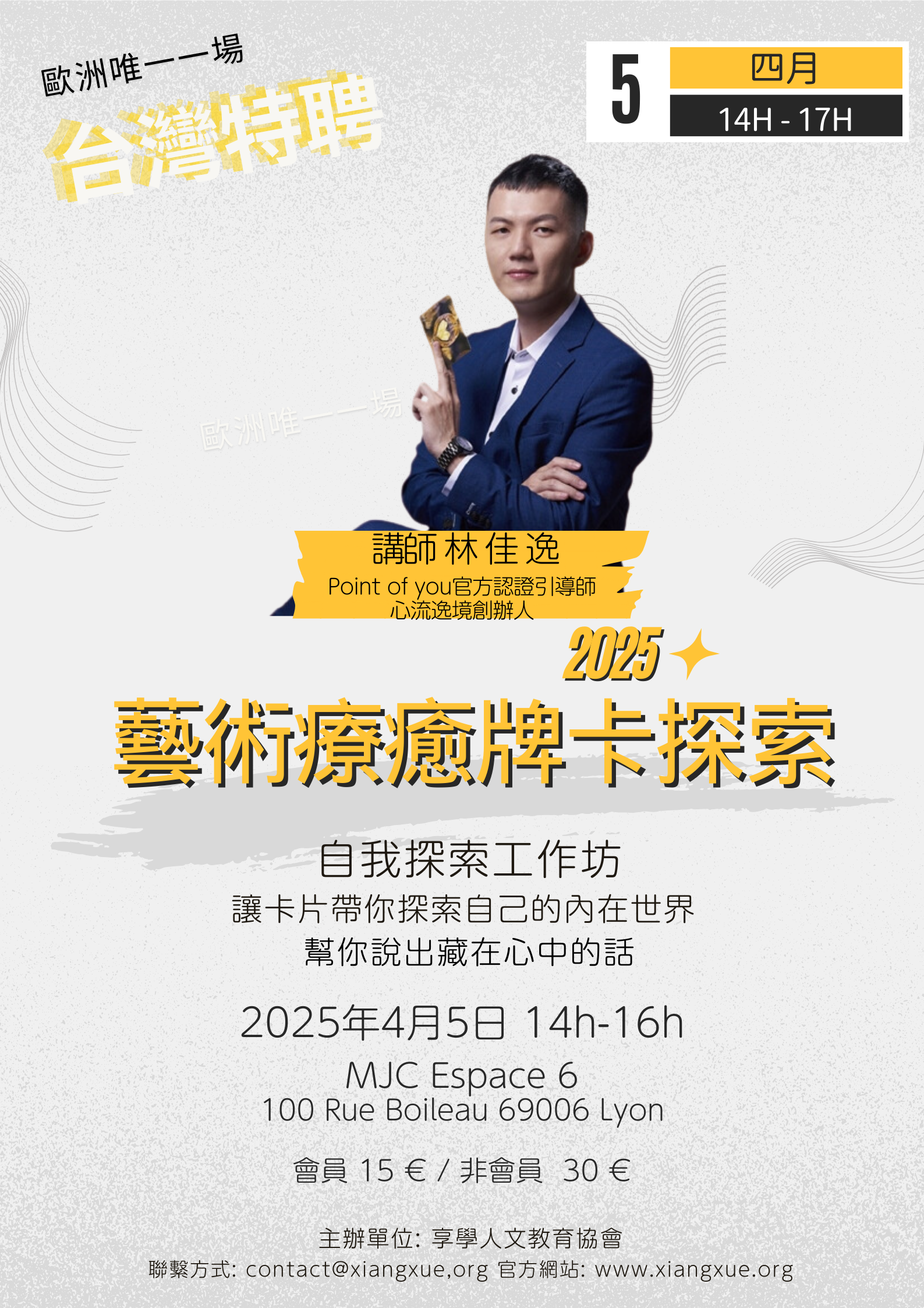 享學協會於2022年底於法國里昂創立,初衷是設立孩子的中文學習班。隨著時間的推移,我們逐步擴展,為住在里昂的華人家庭提供更多親子活動和聚會。2023年我們成功舉辦了端午節慶活動引起了當地媒體與駐法代表的支持,吸引了里昂的當地居民和華人家庭,同年也推動了其他富有教育意義的親子活動,讓里昂大區的許多華人家庭得以相聚同樂。