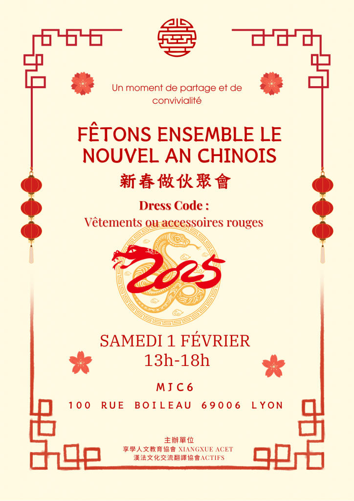 Cette année, nous sommes ravis de collaborer avec l’association Actifs pour la promotion des échanges culturels franco-sinophones pour vous proposer une chaleureuse célébration du Nouvel An Chinois.